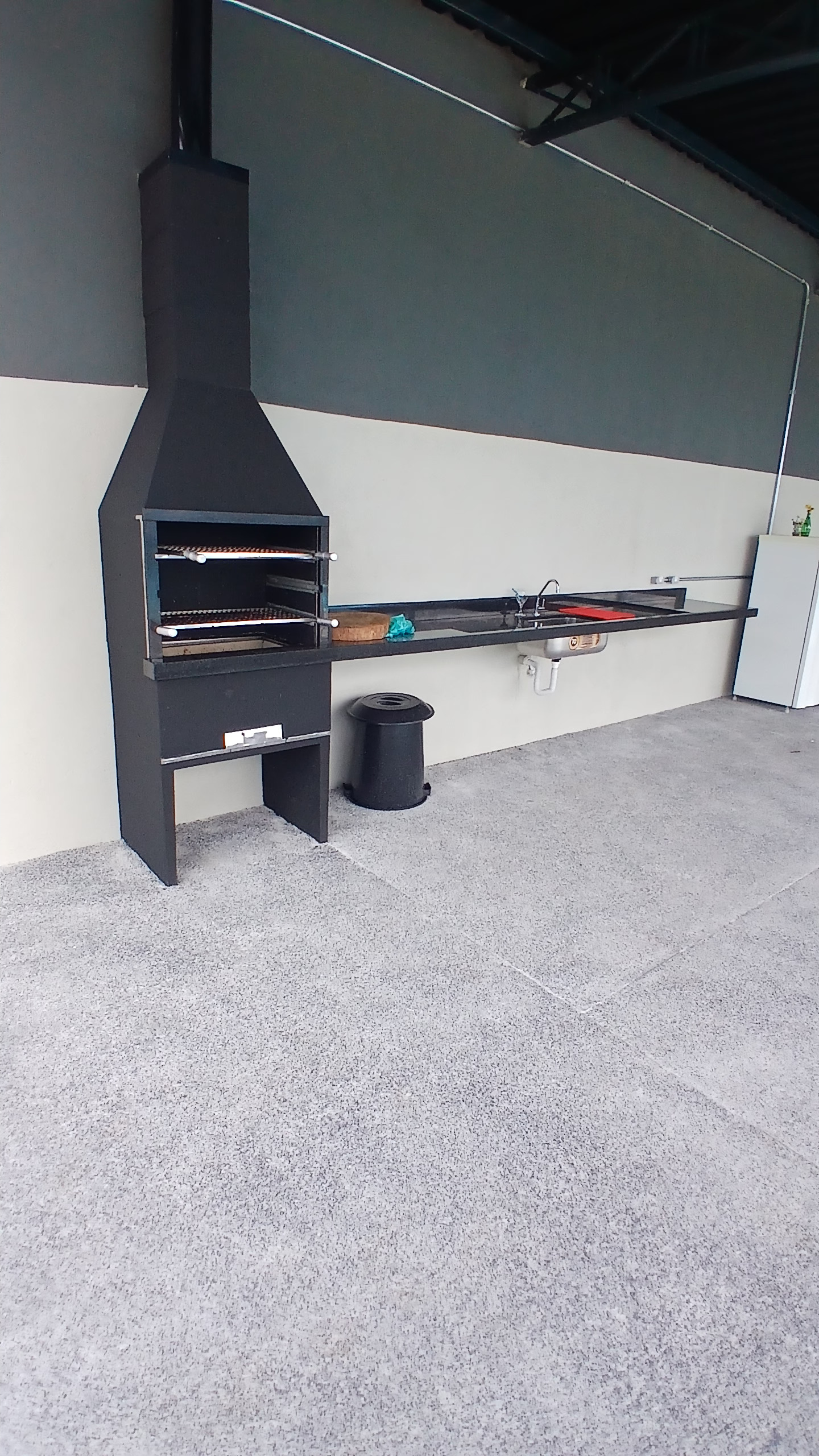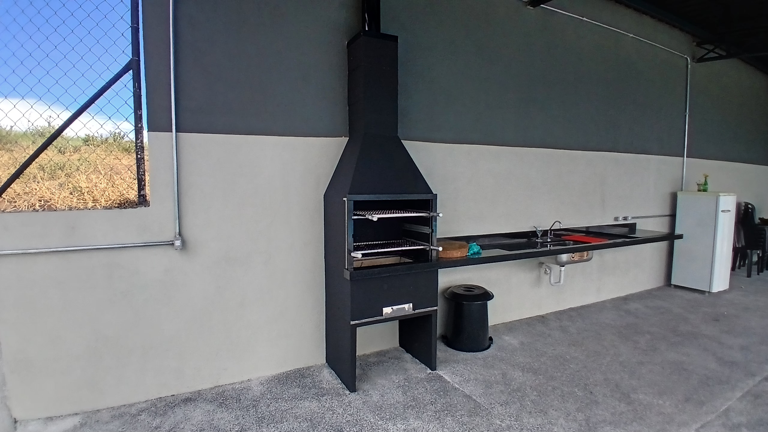 Churrasqueira e pia de apoio